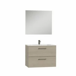 Het meubel wordt geleverd met een wastafel. De sets zijn leverbaar met een witte of een zwarte wastafel. Kijk tussen de varianten om de verschillende opties te ontdekken. Het meubel wordt volledig voorgemonteerd geleverd, u hoeft het meubel alleen nog op te hangen. Hiervoor is uiteraard een handleiding en bevestigingsmateriaal meegeleverd.