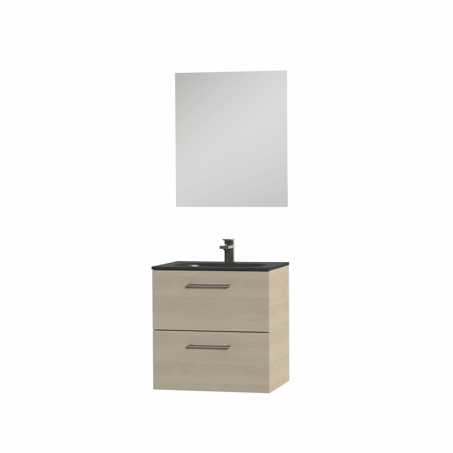 Het meubel wordt geleverd met een wastafel. De sets zijn leverbaar met een witte of een zwarte wastafel. Kijk tussen de varianten om de verschillende opties te ontdekken. Het meubel wordt volledig voorgemonteerd geleverd, u hoeft het meubel alleen nog op te hangen. Hiervoor is uiteraard een handleiding en bevestigingsmateriaal meegeleverd.