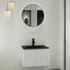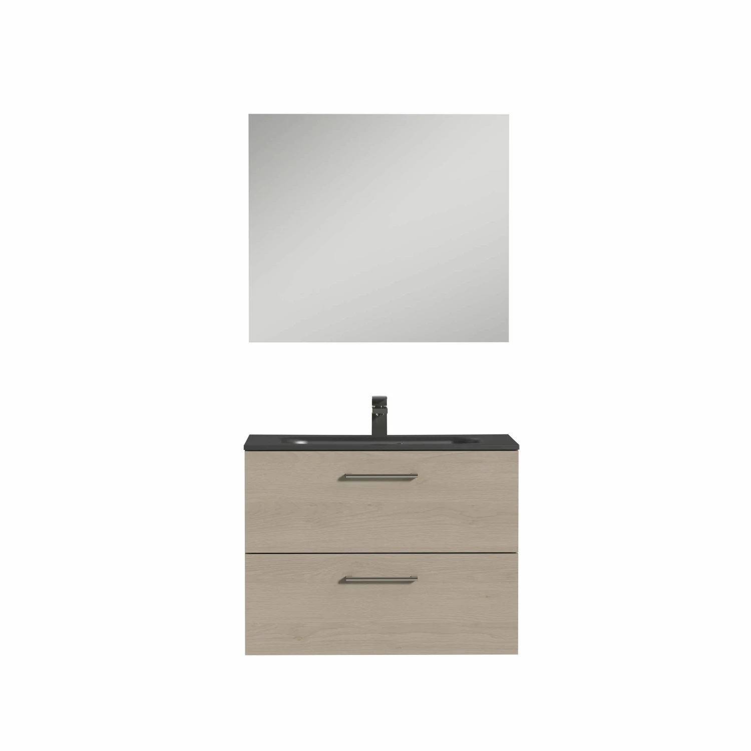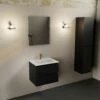 Het meubel wordt geleverd met een wastafel. De sets zijn leverbaar met een witte of een zwarte wastafel. Kijk tussen de varianten om de verschillende opties te ontdekken. Het meubel wordt volledig voorgemonteerd geleverd, u hoeft het meubel alleen nog op te hangen. Hiervoor is uiteraard een handleiding en bevestigingsmateriaal meegeleverd.