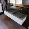 Het meubel is volledig gemaakt van Solid surface. Dit is naadloos verlijmd voor een exclusieve en moderne uitstraling.Â