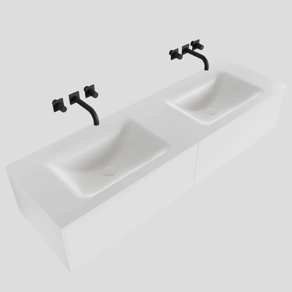 Zaro Lagom mat wit Solid Surface 150cm badkamermeubel inclusief wastafel