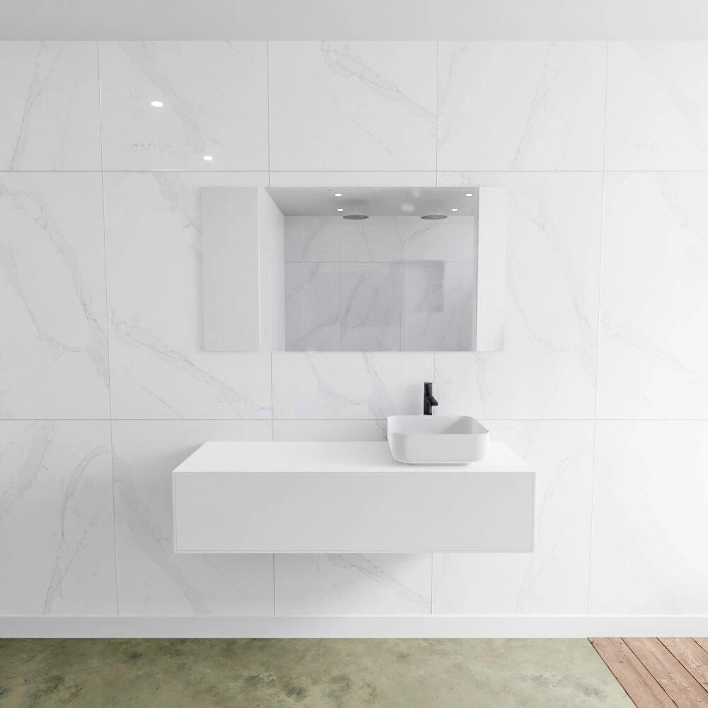 Zaro Lagom mat wit Solid Surface 130cm badkamermeubel inclusief waskom