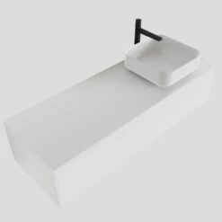 Het meubel is volledig gemaakt van Solid surface. Dit is naadloos verlijmd voor een exclusieve en moderne uitstraling.Â