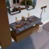 Het badmeubel is voorzien van 2 lades. Beide lades zijn uitgerust met een softclose sluiting. In geen van de lades zit een uitsparing voor het sifon. Gebruik daarom een ruimtebesparend sifon incl solid surface clickwaste om de afvoer aan te sluiten. Deze vindt u terug onder de toebehoren.