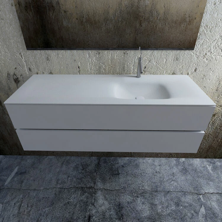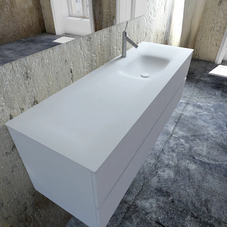 De wastafel is gemaakt van Solid Surface. Het kan uitgevoerd worden met of zonder kraangat. Solid Surface is een prachtig materiaal met vele voordelen: